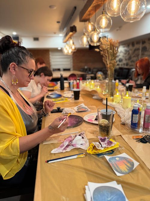 A cozy 2.5-hour guided workshop where you’ll paint your own artwork on a natural wooden slice.